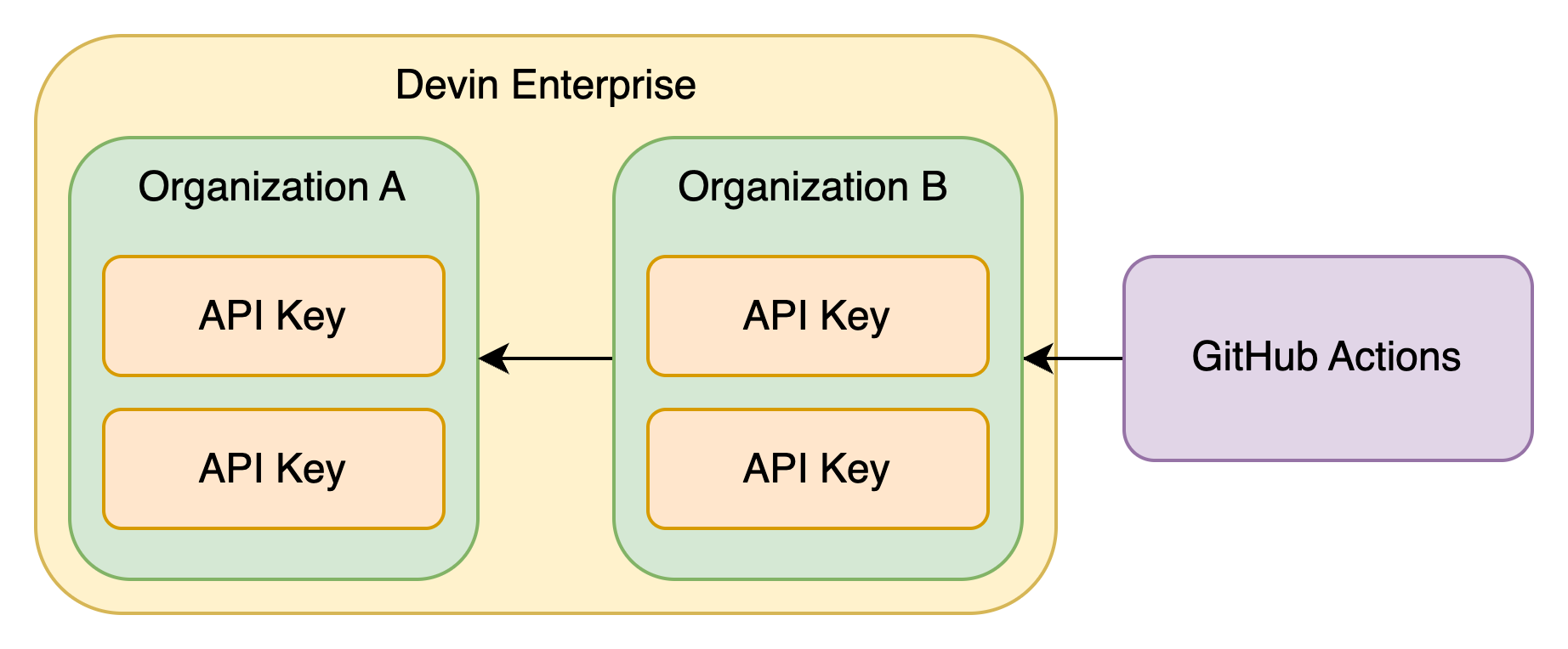 Devinはv3 として最新のEnterprise管理向けAPIを提供しています。Enterprise・Organization単位のMember・Role管理や、各OrganizationのSecret・Knowledgeを操作できます。v3 APIで以下の自動管理機能を実現しました。